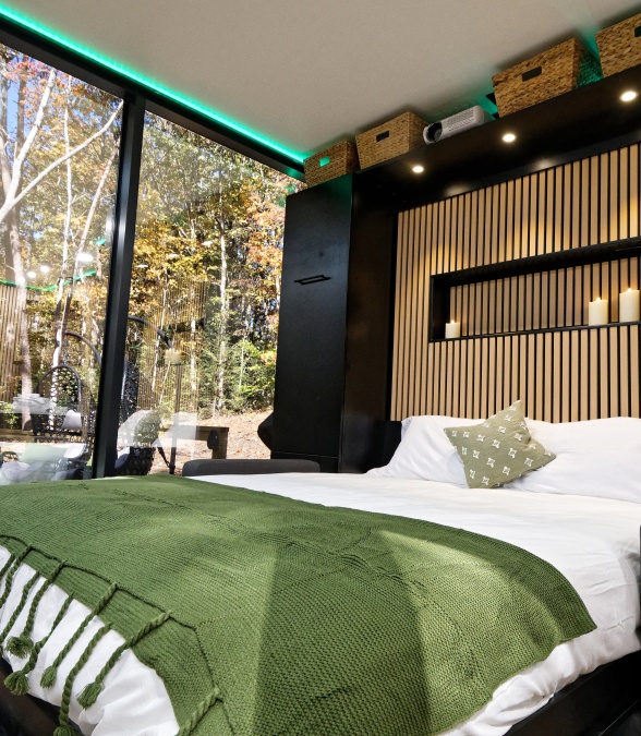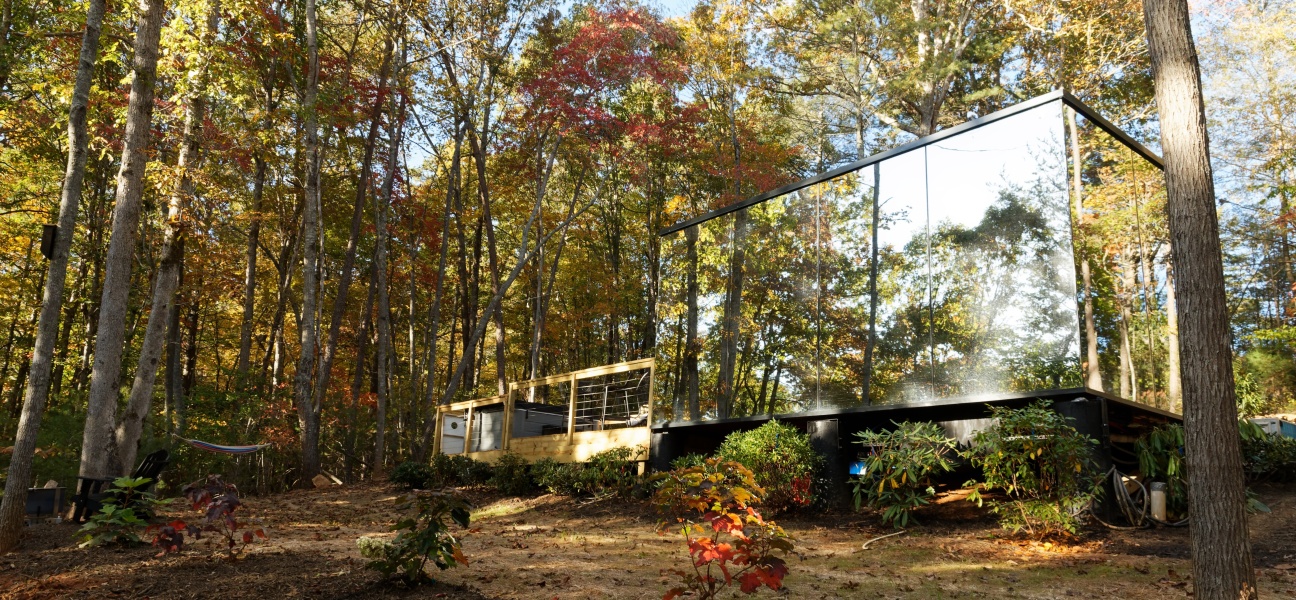 Unwind in the quiet mountains outside of Asheville, NC, unwind from life's stressors, and rejuvenate your mind and body as you forest bathe through one-way glass walls.