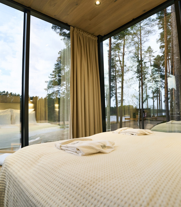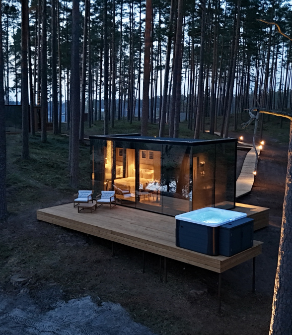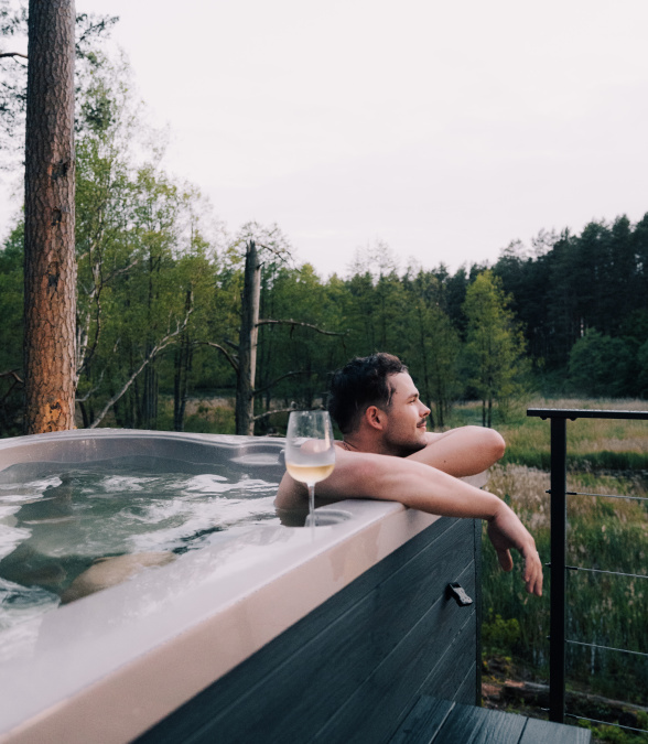 Step onto the terrace and sink into the jacuzzi overlooking the lake. Here, the serenity of nature truly envelops you, allowing for a moment of deep connection, peace, and freedom.