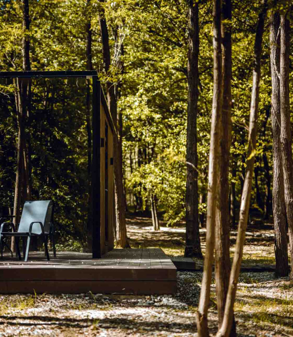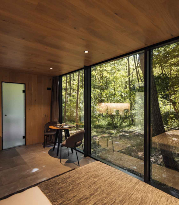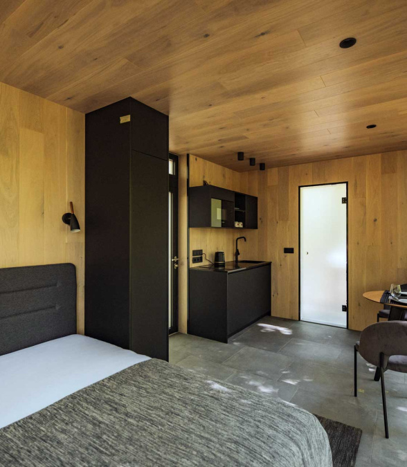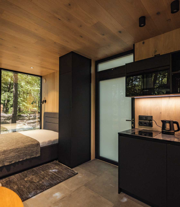 Mala Vila is home to a variety of birds, insects, and small animals, as well as compact mirrored houses that gracefully reflect their surroundings. Each house represents an element – Aria (air), Ignis (fire), Terra (earth), and Aqua (water). They are placed in an organic form, covering a small portion of the total built-up area, leaving the forest and its ecosystem to thrive around them. Mala Vila guests can relax as well as get invigorated by village walks, mushroom foraging, cycling, bonfire evenings, reading, and wellness.
