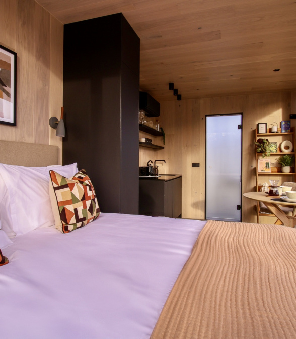 After days spent exploring Anglesey or hiking in Snowdonia, sink into your private hot tub, then enjoy the shared sauna and cold shower, inspired by Nordic bathing rituals.
