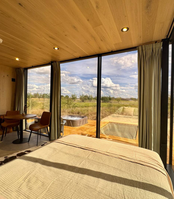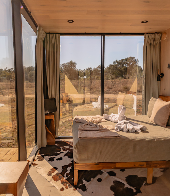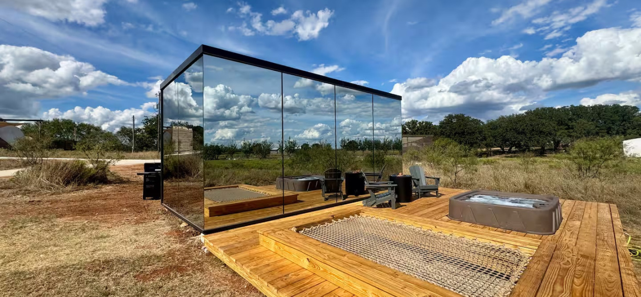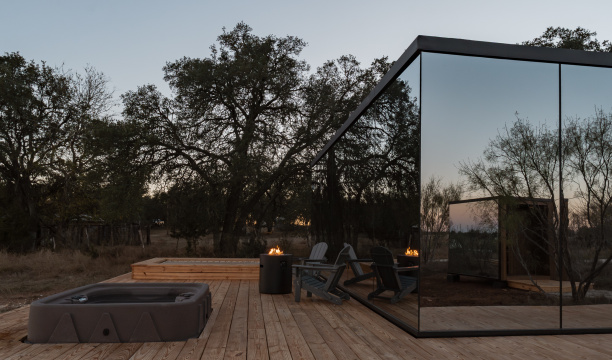 Nestled in the heart of the Texas Hill Country, Ursa Minor is a captivating ÖÖD Mirror House where sleek modern design blends seamlessly with nature’s beauty. Inside, you’ll enjoy a comfortable queen bed, a well-equipped kitchenette with dining space, Wi-Fi, and a smart TV for cozy evenings in.Step outside to your private deck and take in vineyard views of Michael Ros Winery while soaking in the hot tub, lounging by the fire pit, or stretching out on the recessed stargazing netting under the Texas sky.