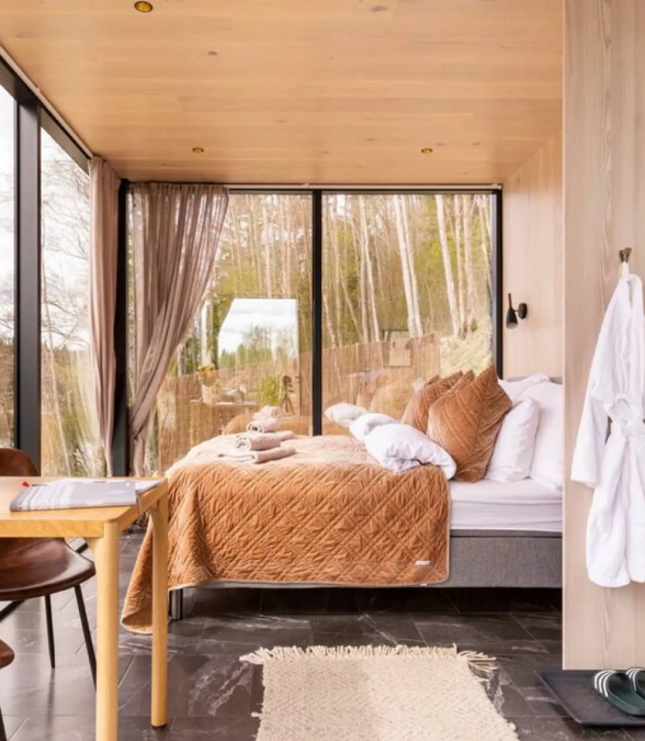 A free 1-hour sauna session in our unique mirrored sauna is included in your stay. You can book a time to enjoy the views over the river alone or with your partner - and finish the session with a refreshing swim in the Vorma River!